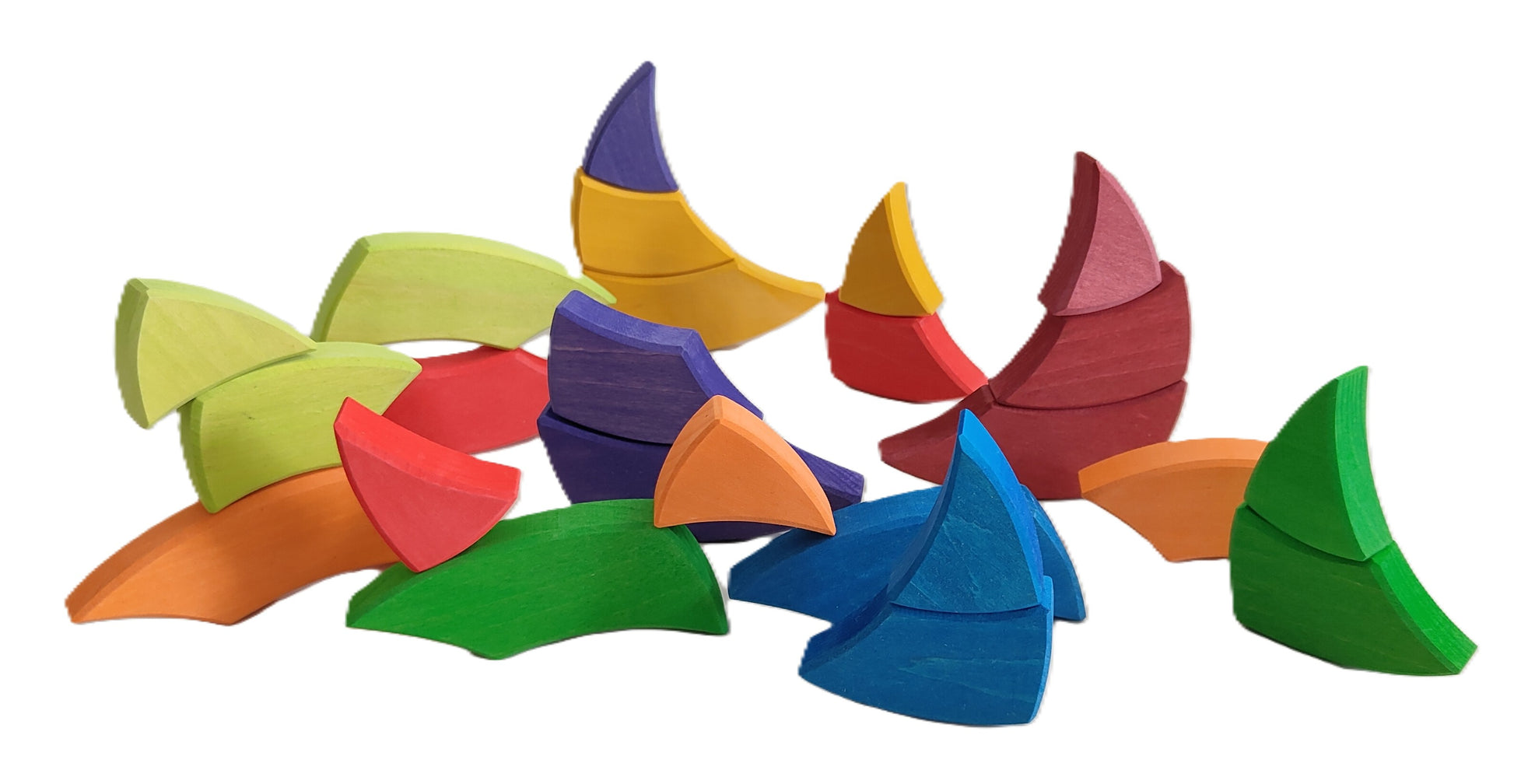This wonderful set of puzzle blocks can be used to nurture a feeling for colours and forms while encouraging spatial perception and logical thinking.